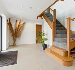 A welcoming and generously proportioned entrance hall, complete with built-in storage and an oak and glass staircase, sets the tone on arrival. At the heart of the home is a stunning open-plan kitchen, living and dining space, a beautifully light dual-aspect room that opens directly onto the rear gardens through bi-folding doors. Adjoining the kitchen is a practical utility/boot room with shower and WC, along with a separate plant room housing the oil boiler.