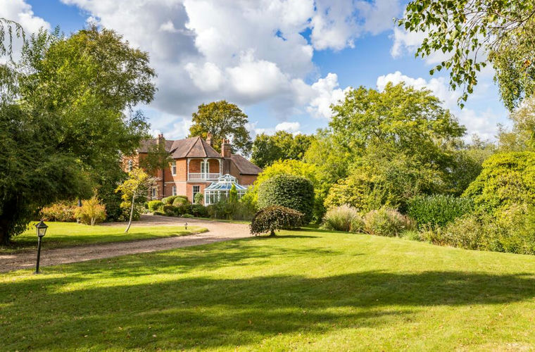 Wrought iron gates set into brick pillars open onto the sweeping driveway whilst the gardens wrap around three sides of the house with large swathes of lawn interspersed with mature flower and shrub borders providing year round colour and interest. Tall hedges and mature trees give a secluded charm and an impression of various “garden rooms” as well as woodland walks and a delightful pond. There is a triple garage with home office/studio above - a perfect, work from home space.