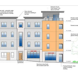 Planning permission has been obtained for the redevelopment of the existing site which extends for approximately 0.08 hectares with a four and five storey building to contain a retail unit on part of the ground floor with two flats also on the ground floor, together with a further 12 flats above.
