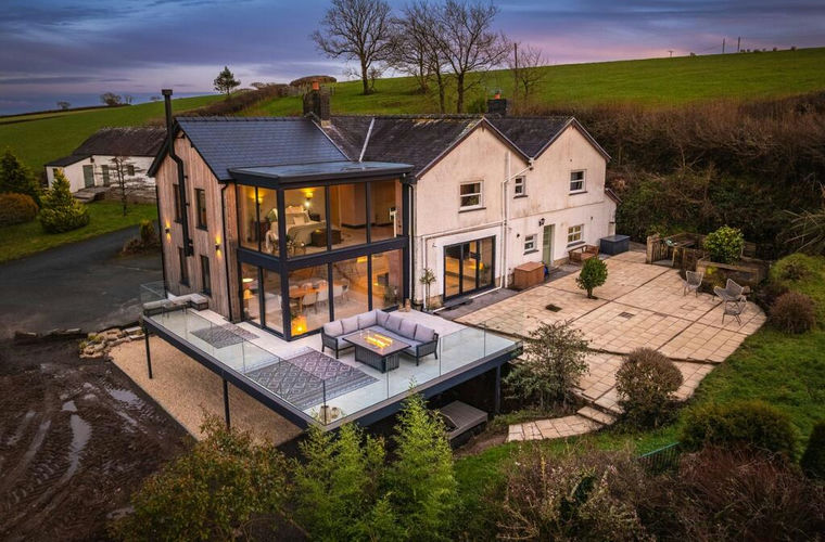 Halldown Farm is a remarkable property that offers a seamless fusion of a two-hundred-year-old farmhouse, with a stunning modern extension. This superb home provides four double bedrooms and four bathrooms arranged over two levels. The focal point of the property is undoubtedly the jaw-dropping main living area, which extends out onto the wrap-around terrace with a captivating backdrop of rolling fields. Halldown Farm enjoys total rural privacy and sits within approximately 1.38 acres of grounds. In addition to the main house, there is a run of original stone outbuildings along with a large garage/workshop block. These outbuildings, together with the newly completed basement level of the extension, offer huge scope for those seeking secondary accommodation or running a business from home. The property is situated just outside the famous township of Laugharne and enjoys easy access to the east/west A-road network. This remarkable home is truly a hidden gem in the West Wales countryside.