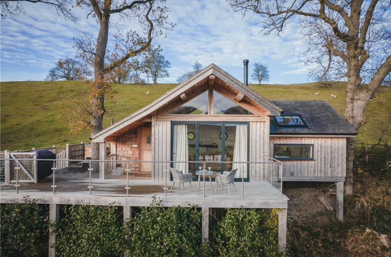 Inside, the finish is exceptionally high with oiled engineered oak flooring, handcrafted woodwork and traditional ledge and brace doors. The open plan fitted kitchen, dining and lounge area benefits from bi-fold doors leading onto the private terrace with views of the Welsh countryside. There is a generous double bedroom with feature freestanding bath set under a picture window. A separate shower room includes a countertop basin and walk in rain shower with high pressure hot water system. The Treehouse benefits from underfloor heating, a woodburner, mains electricity and water.