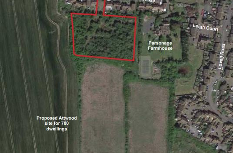 To the north, the site abuts the rear gardens of properties facing onto Parsonage Chase. To the east are glimpses of the listed building, Parsonage Farmhouse, whilst to the south and west are arable fields which are a proposed site for 700 dwellings.