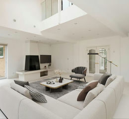 The contemporary house sits in the middle of the island with views of the Thames and rich flora, fauna and wildlife. Designed with light and space in mind, the house is bright throughout with large windows, large rooms and flexible living space.