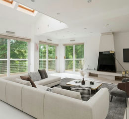 We designed the house ourselves making the most of the setting, we have large windows all around, high ceilings and open plan living space, it’s so bright here, every room is light. The balconies are great for enjoying the views and garden directly from the living areas.