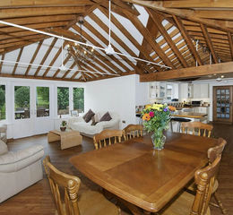 The property has been subject to a programme of renovations and updating from top to bottom and is presented in excellent order throughout whilst still maintaining many period features including traditional ledge brace doors and inglenook fireplaces. The accommodation is arranged on two floors, ideal for both family life and entertaining. A rear extension has feature vaulted beamed ceilings and exposed rafters creating a fantastic area flowing into a high specification bespoke kitchen, opening into a dining/family room with doors opening onto outside patio. Further downstair rooms consist of utility room wet room/cloakroom, sitting room, further reception room/bedroom five.