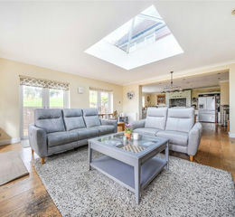 The house has an abundance of space, none more so than in the kitchen which is a space made for relaxing and entertaining. The seating area has glazed doors to two sides with views over the garden and a large roof lantern affording an abundance of light. There is space for a large dining table and a well-equipped kitchen with obligatory island. For those cozy evenings in, the sitting room is perfect and comes complete with a wood burning stove. There is also a large study, a cloakroom, utility room and laundry room. Upstairs on the first floor the spacious double aspect landing leads to four well proportioned bedrooms, two of which have en-suite facilities. On the second floor is the principal suite, which won’t disappoint, with large en-suite and walk-in dressing room with fitted units.
