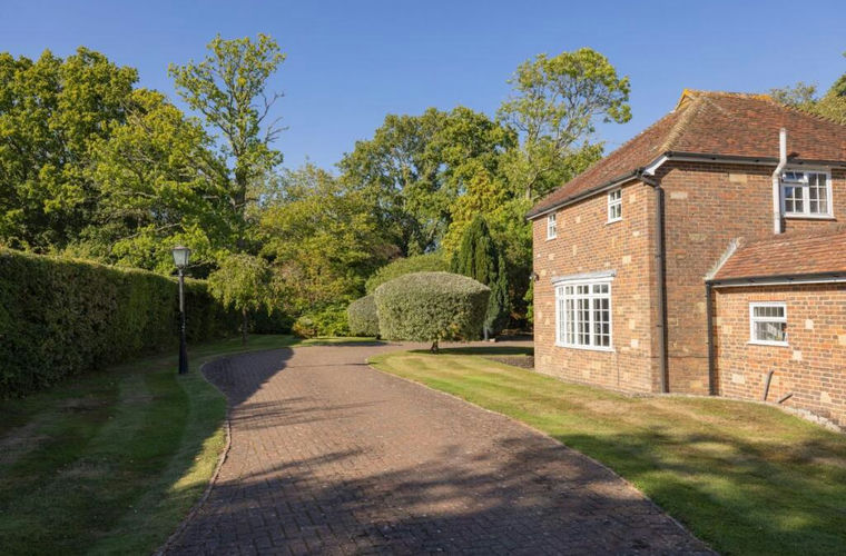 The grounds extend to approximately two and a half acres and are a defining feature of the property. Expansive lawns, a productive orchard, vegetable beds and greenhouses combine to create a setting that is both impressive and functional. At the heart of the gardens lies a heated 25-metre swimming pool with summer house, designed for leisure and entertaining. Beyond, woodland pathways open to uninterrupted views of the South Downs, enhancing the sense of seclusion and natural beauty.