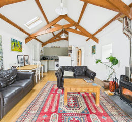 As you enter the property, you are greeted by the spacious hall which leads to the double bedroom and modern shower room. The open plan living room/kitchen is a real highlight, with vaulted ceilings, a wood burner for those cosy evenings, and a door leading out to the gardens. The split level accommodation adds a unique touch to this already impressive property.