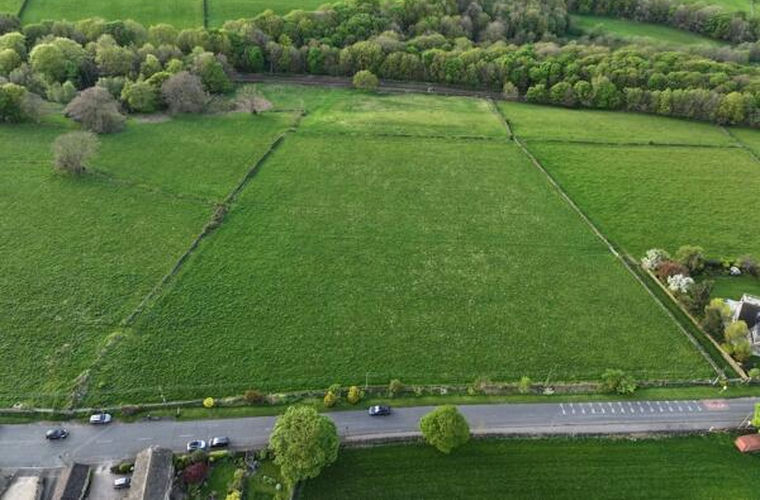 The land comprises approximately 7.68 acres (3.11 hectares) of relatively regularly shaped grassland, largely flat, with a moderately sloping section towards the north. The land is divided into two fields by dry stone walls. Residential dwellings are to the east of the holding.