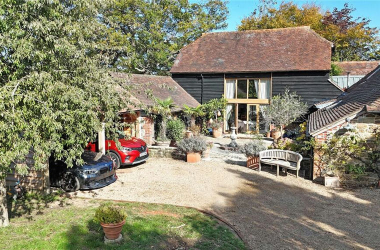 A unique country property with converted timber barn, annexe and various barns/outbuildings/stables plus about 3.79 acres. Opportunity for a wide range of uses as a small farm, an equestrian property, suitable for the car enthusiast with extensive storage. Close to the village.