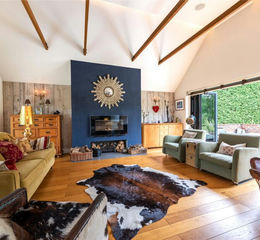The Linhay is a substantial and most impressive oak framed barn conversion, converted in 2009. It is evident throughout that the conversion has been done to an exceptional standard, featuring a host of high quality refinements including a custom made, high quality fitted kitchen with a substantial central island, complemented by Corian work surfaces, with a range of integrated appliances. The kitchen/breakfast room is very much the hub of the house and seamlessly blends into the sitting room, which has steps leading up to it and is a dual aspect room, featuring a Hwam wood burning stove and bi-folding doors to each side. The cinema room features black out blinds, a super wide screen and built-in speakers. There is a separate study (this could be utilised as a further bedroom) and downstairs cloakroom. From the dining hall, an impressive oak and glass staircase rises to a magnificent first floor galleried landing, with extra light provided by electronically operated rain sensor roof lights. The main bedroom has a dressing room and en-suite with walk in shower, whilst there is also a guest suite and two further double bedrooms, served by a family bathroom with a separate shower. The grounds are a particular feature, offering a good degree of privacy and seclusion. The gardens are mainly laid to lawn extending to both the front and rear and outside the sitting room there is a brick built outdoor kitchen with lighting, and external speaker system, which makes for an ideal alfresco/entertaining area. There is a large pond with a central duck island, fully enclosed by post and rail fencing and there is an additional further area of lawn. The property is approached by a pair of solid remote controlled timber gates, which lead to a large drive and shingle area with parking and turning for many vehicles. The current owners previously had planning consent granted, which is now lapsed for an oak framed double garage with habitable room above. The grounds in all, extend to about 0.7 of an acre.