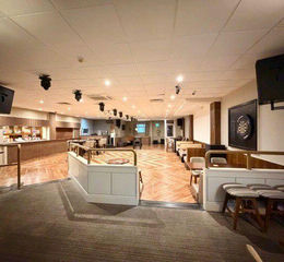 Upholstered seating for 30 patrons, carpet flooring, suspended ceiling, concealed lighting and featuring a full-size Snooker Table and 2 large flat screen TVs.