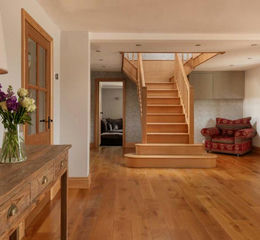 The farmhouse has been carefully extended and renovated over the years, with high-specification modern additions creating over 5,100 sq. ft. of versatile accommodation designed for both family life and entertaining. The layout is flexible and practical, with multiple entrances providing access. The main everyday entrance leads directly into the extended wing of the house, where a series of versatile service spaces — including a boot room, utility room, office and workshop — are arranged for effortless daily use. These flow through to the inner hallway, where an impressive central staircase links the living spaces and rises to the upper floors.
