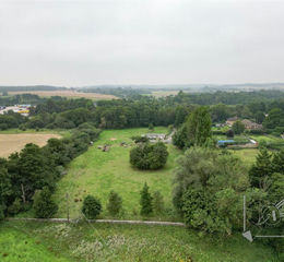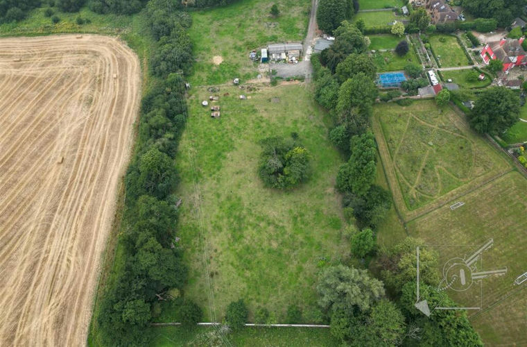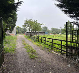 A plot measuring 2.8 acres with private driveway. Previously used as farmland with a stable block and farmhouse. Potential for residential development, subject to planning permission.