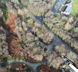 The land is accessed from the road by a shared access track, utilising an existing bell-mouth entrance. Benefitting from direct road frontage, this prime business location is highly visible to passing traffic, offering a wide range of commercial possibilities.