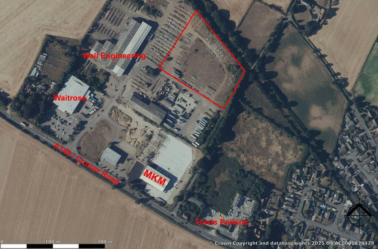 The site is to the east of Wall Engineering's factory and to the north of premises occupied by Starling's Transport and R&L Morter. The boundary to the north is the Norwich to Sheringham railway line.