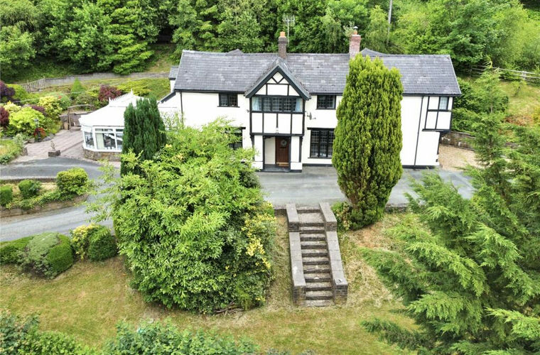 The sale of Dyfnant offers an excellent opportunity for someone looking for a substantial house on the outskirts of the town in pleasant gardens with an area of woodland to the rear which extends to approximately 1.68 acres (0.683 ha). The property retains a number of features with oak cased windows with leaded lights, gas central heating, beamed ceilings, woodburning stove, extensive conservatory/family room/breakfast room to the side.
