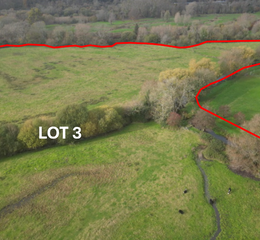 LOT 2 - Approx. 23.21 acres (9.39 Ha) in all. Pasture land. Fenced. Access over Bridge 3. Additional Right of Way access from the south as identified brown on Site Plan 2. Small block of mixed woodland. Designations include SSSI and SAC.