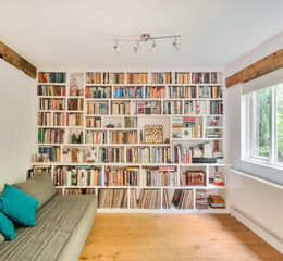 • Bedroom 2 is another excellent double bedroom, with a range of fitted wardrobe cupboards and extensive fitted bookshelves to one wall (this room is currently used as a library/office).