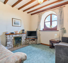 The First Floor Landing is spacious, in-fact, roomy enough to create an 'Office Nook' if required. The rear external door leads to the Communal Courtyard. The Sitting Room is cosy with attractive, feature, round window with deep display sill and pleasant country view. Stone fire place with electric living flame fire. The main Bathroom has a high level window and white suite comprising WC, pedestal wash hand basin and bath with shower over.
