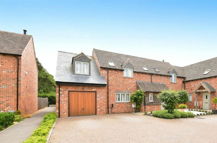 A stunning four-bedroom family home, designed in barn conversion style in 2019, boasts exceptional quality. Featuring oak herringbone flooring with underfloor heating on the ground level, a gorgeous open plan kitchen/dining/family room with quartz worktops and integrated appliances awaits. Enjoy cosy evenings by the "Westfire" Eco log burner in the sitting room. Work efficiently with full fiber-optic broadband and Cat 6 networked cabling. Double glazed windows feature electric blinds and bespoke fitted shutters. Outside, a private south/east-facing rear garden awaits, along with a large single integral garage and electric car charging point. The layout includes an entrance hall, cloakroom, utility room, master bedroom with ensuite, guest bedroom with ensuite, bedroom three with a walk-in wardrobe, bedroom four, and a family bathroom with bath and separate shower cubicle.