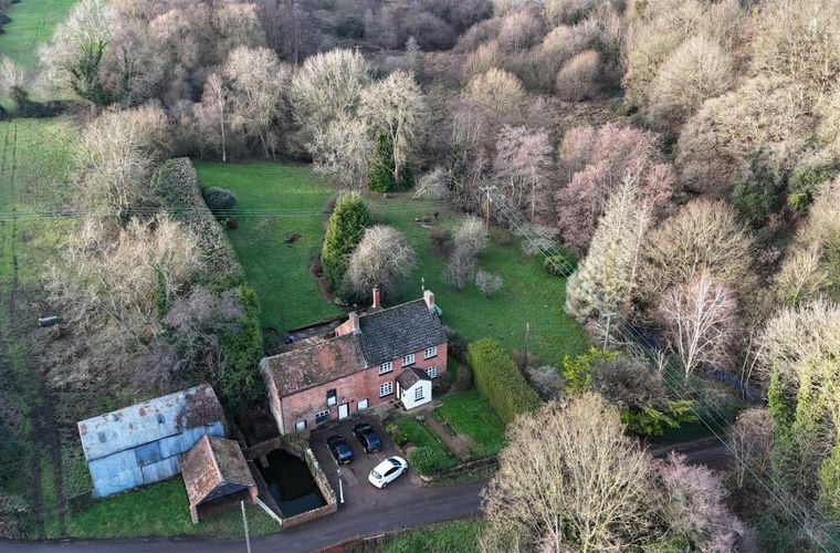 A FIVE BEDROOM DETACHED FAMILY HOME with ATTACHED FORMER MILL (WITH ORIGINAL WORKINGS), offering WORKSHOP SPACE etc amounting to APPROX 2,000 SQ FT, or other uses subject to planning permission, AMPLE PARKING, STREAM BOUNDARY, GARDENS and PADDOCK / ORCHARD, the WHOLE PLOT AMOUNTING TO 1.2 ACRES with FIELDS TO THE FRONT AND REAR, all being offered with NO ONWARD CHAIN.