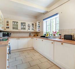 Kitchen - 3.07m x 2.62m (10'1 x 8'7) - One and a half bowl single drainer sink unit with mixer tap, cupboards under, range of base and wall mounted units, integrated fridge, washing machine, freezer and dishwasher, electric double oven with four ring hob over, cooker hood above, tiled flooring, double radiator, rear aspect window with a lovely private outlook over the gardens.