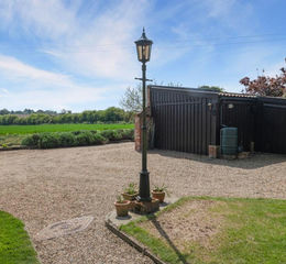 The barn is approached from Church Road, which is a designated quiet lane, over a winding driveway which leads to the gravelled drive which provides parking and gives access to the garage which has a storage room alongside. Alongside the drive are areas of lawn, with raised beds from where there is a lovely view over the neighbouring farmland to the south. Steps lead up to the covered veranda form where doors open into the kitchen and sitting room. A second set of steps lead up to a second storage room and wood store. To the west of the property, accessed from the sitting room, is an enclosed, private paved courtyard garden.