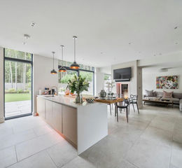 The sleek, fully integrated kitchen features premium German cabinetry, Silestone worktops, and top of the range appliances, including Siemens dishwashers, an induction hob, microwave, larder fridge, wine cooler, cold drinks centre, and a Fisher & Paykel American fridge freezer. The downstairs of the property also features a cosy snug, practical utility room and WC.