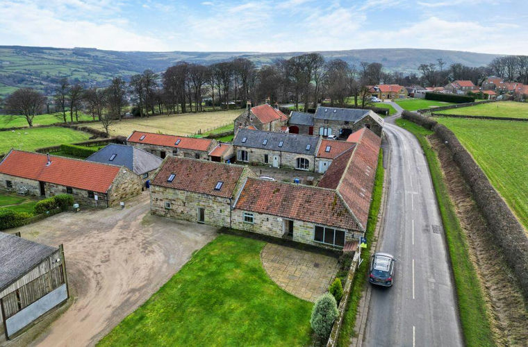 This stunning barn conversion offers spacious living with period charm and open views located on the edge of the village and only a few miles from the coast. The property comprises a four-bedroom home with two floors and an adjoining two-bedroom cottage on one level, which offers multi-generational living or a potential income from holiday accommodation. North Barn has an impressive reception room with a stone-flagged floor and floor-to-ceiling glazing that offer views out over the farmstead. Double doors lead through to the breakfast kitchen that has Oak cabinets with a cooker range and a vaulted ceiling with exposed beams. There is a downstairs bedroom that has a large picture window that floods the room with natural light, plus there is a bathroom across the hall along with a utility room. Upstairs there are three additional bedrooms and a second bathroom that has a four-piece suite comprising a bath and a shower. West Cottage has fully fitted kitchen/diner, a vaulted ceiling lounge with large glazing, two bedrooms and a bathroom. Outside, North Barn has a lawned garden with a patio whilst West Cottage has a private patio garden within Toft Hall Farm courtyard that’s shared with the neighbouring properties. The property is offered with vacant possession and is chain-free. The village of Aislaby is well-served with a local pub “The Forge” and it has the moors on its doorstep and the coast a few miles away.