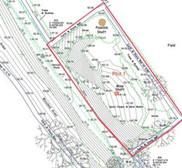 The land is mainly hard ground stone and shrub cover over the ground and a concrete block mine shaft entrance into the old Tin mine lies within the centre of the land.