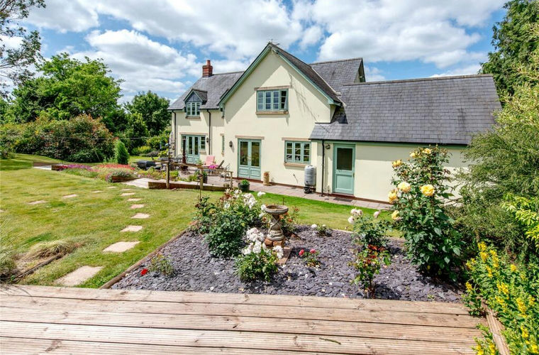 The property is approached off the public highway via a gravel driveway which provides parking for several cars and gives access to an attached double garage. Beautiful landscaped lawned gardens lie to the side and rear, interspersed with a number of mature trees, shrubs and bushes. Adjoining the rear of the house is a sun terrace perfect for alfresco dining and summer entertaining. A set of steps lead up to a second raised decking area complete with a summer house. Here there is a hard landscaped rose garden with well established borders further adding to the property’s appeal. To the south is an extensive vegetable garden together with 7.2 acres of gentle sloping pastureland containing a stable block and small barn. The land is ideally suited for those with equestrian, livestock other amenity interests at heart.