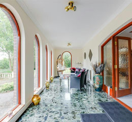 - Large entrance hall, hallway with gallery and sitting room leading to entertaining room/bar.