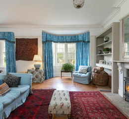 The property retains a truly welcoming and traditional atmosphere, now complemented by elegant, updated decor. This includes fresh, neutral colours in the expansive drawing room, delightful sitting/dining room, and airy, high-ceilinged rooms throughout. Each space harmoniously combines modern aesthetics with the property's historical elements, such as decorative cornicing and charming ceiling roses. The kitchen/breakfast room continues to feature classic country style, updated with a lighter palette around the striking stone inglenook that houses a stunning AGA. The kitchen is served by an adjoining utility and connects to a rear hall in the west wing of the property, which has a separate private entrance and continues as a successful Bed & Breakfast.