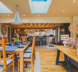 Fox Barn Farm is a beautifully presented detached stone-built barn conversion benefiting from an adjoining guest annexe - currently operating as a successful holiday let. The property is set within approximately 0.7 acres of mature gardens. The property is surrounded by stunning countryside that provides an idyllic setting and stunning views to enjoy whilst relaxing on the wrap around terrace, a perfect spot for al-fresco dining. Both the property and adjoining annexe have been extensively renovated throughout to an exceptionally high standard. This includes complete re-plumbing/re-wiring, new heating installation, contemporary yet in keeping extension to kitchen/living room, high quality fixtures and fittings and bespoke fitted utility/boot room.
