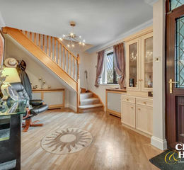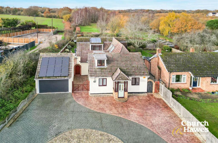 Looking for a generous home with a plot measuring approx 2.5 acres, then this property is for you. This well-presented 4-bedroom detached chalet bungalow, ideally situated a short walk from the heart of the popular village of Tiptree, close to the shops, schools, and local amenities. With accommodation spanning more than 2,800 square feet (including the garage), the Property boasts a large entrance hall to the extensive ground floor. This features two double Bedrooms, with one serviced by an En-Suite Shower Room, which is in addition to the Ground Floor Family Bathroom, a spacious lounge leading to a Sun Room, both of which overlook the formal garden. A separate Dining Room, and a generous fitted Kitchen with ample room for dining at the breakfast table, leading to a Utility Room, with access to the garden. Upstairs, there are two double bedrooms, one of which measures 27' x 16' and benefits from an En-Suite Shower Room. Externally, the property benefits from a generous Carriage Driveway, providing off-road parking for numerous vehicles and affords access to the Double Garage with electric doors to the front and rear.