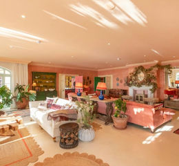 Impeccably designed in a striking maximalist style, the property boasts a grand entrance hall with an imperial staircase and an opulent chandelier, setting the tone for its refined elegance. Spanning an impressive 10,000 square feet, the residence features six beautifully appointed bedrooms and six bathrooms, providing generous accommodation for both family and guests.