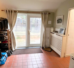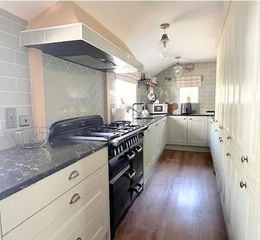 Inside, the cottage offers three bedrooms, a cosy living room/snug featuring exposed beams and an open fireplace, and direct access to the garden and stable block. There is a modern fitted kitchen with a walk-in larder, a bathroom and separate shower room, a breakfast room, garden/boot room, and a dedicated laundry room.