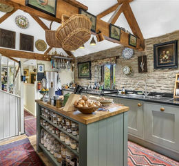 A wonderfully characterful converted 4 bedroom Granary with open plan reception room on the first floor, circular library and landscaped gardens.