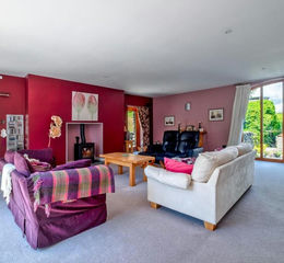 Reception One - Lounge - 7.28m x 6.08m - With side aspect, full length double glazed barn window affording a good degree of natural light. Individual and full double glazed french doors to the rear. With good ceiling height of 2.47, there are two double radiators with thermostats, eight double power points, telephone point, TV aerial with Sky link, halogen lighting. Three wall lights, dimmer switch. Tasteful decor of 'English Plum', cream carpeting. Features log burner, chimney breast and full immersive Bose Cinema Surround Sound.