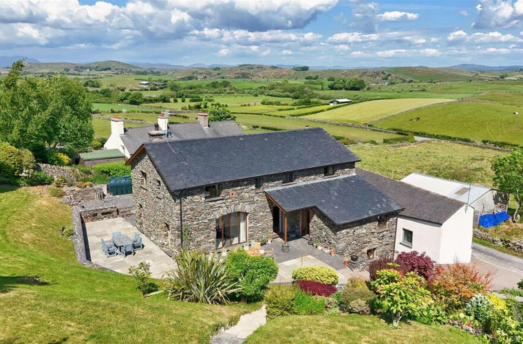 Exterior Front - This is a most substantial, detached barn conversion of outstanding quality, with a rural location but highly convenient for town. With the slight elevation there are superb open views at the front - with Cartmel Peninsula, Lakeland Fells clearly visible.