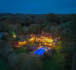 The beautiful grounds extend to an acre, incorporating formal lawns, a pond-side seating area, and multiple terraces for outdoor entertaining. An air source heated swimming pool with fitted cover completes the setting, creating a superb private retreat.