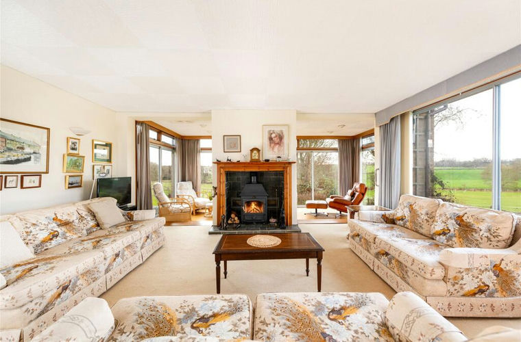 There are five separate reception rooms on the ground floor, each with floor to ceiling glazing or picture windows providing ample natural light and far reaching countryside views. The sitting room has a feature fireplace and two openings to the sun room which has triple aspect glazed sliding doors. to the south facing rear garden. The dining hall is almost 25 ft. long and has glazed sliding doors to a rear terrace which is also accessible from the sun room and garden room giving a good flow from inside to out for modern family life and entertaining. The dual aspect family room has views over the rear garden, stable and countryside beyond.