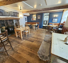 Main Bar & Dining Area a well appointed character open plan room with stripped oak wood flooring, mock ceiling timbers, two feature fireplaces, one with inset wood burner and one with a feature lpg gas stove, glass fronted wine fridge, wall mounted boards and wooden tables, chairs, benches and settles comfortably seating 46 customers plus bar stools.