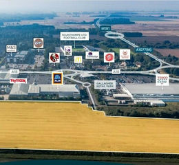 Stratum Park builds on the success of the nearby Gallagher Park retail destination, home to Tesco Extra, Aldi, TK Maxx, and B&Q. Opposite the A18 are additional amenities, including drive-thru restaurants, fast food outlets, a hotel, and the Scunthorpe United stadium