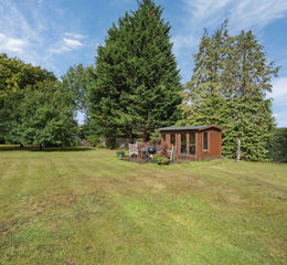 There are a number of outbuildings, all with power and light, to the property, starting with a detached double garage next to the house. Tucked around the corner is a drive leading to another garage/workshop which can house multiple vehicles. There are two more garden sheds, one large enough to fit 2 cars as well as a green house and a charming summer house.