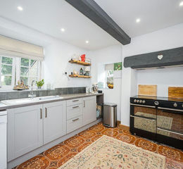 The kitchen has an original feature fireplace which is the perfect spot for the range cooker. There are a range of fitted base units with work top above, space for a dishwasher and fridge freezer and a sink beautifully positioned under the window with a view over the garden and land beyond. A door opens into the pantry / utility room which has plenty of space for white goods and houses the boiler.