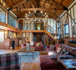 A generously proportioned four-bedroom detached barn conversion, dating from the 1800’s, that seamlessly blending period charm with modern living. The property is accessed via a gated driveway which sweeps through the grounds, creating a true sense of arrival and privacy. At the heart of the home lies a striking main reception room, with vaulted ceilings and minstrel’s gallery. Adjoining this, the high specification kitchen/breakfast room & walk-in pantry have been thoughtfully designed to combine contemporary style with everyday practicality, providing the perfect hub for family living and entertaining alike. The first floor hosts the primary bedroom suite, complete with ensuite bathroom, three additional double bedrooms & family bathroom, ensuring comfort and flexibility for family and guests. Externally, a courtyard patio leads to the main entertaining area, complete with brick pizza oven & barbecue area. Further into the grounds is a beautifully presented lawn, mature trees & plants, and a pathway extending to a well-loved vegetable garden & pond.