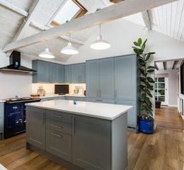 The wonderful dining kitchen boasts a 12'2" (3.71m) high vaulted ceiling with 4 skylights and was upgraded along with the utility room in 2024 to feature an extensive range of contemporary base and wall storage cupboards, complemented by quartz worktops, a quartz topped central island with dining bar, range cooker space and a integrated appliances to include a dishwasher, fridge and freezer.