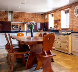 Stone flooring, 4 x upvc double glazed windows to the front aspect, down lights, exposed brick walls, granite work surfaces with units above and below , inset butler sink & mixer tap, built in wine cooler, integrated dishwasher, spaces for an American style fridge freezer & a range master cooker and an opening leads through to the utility room.